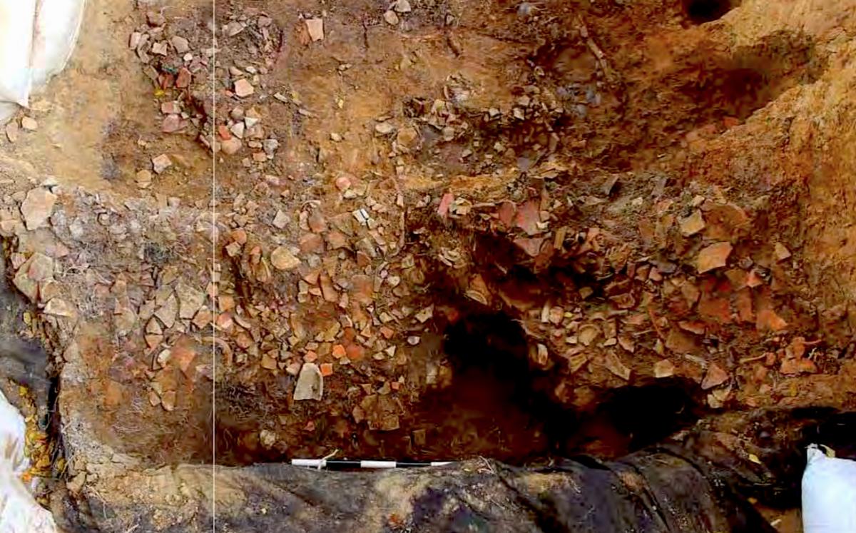 381 - T6-UE125 (a , (llamado en el año 2013, unidad UE167).Entierro de la tumba T6. Depósito de huesos humanos en posición primaria localizado a 3,48 m de profundidad. Es un entierro múltiple...