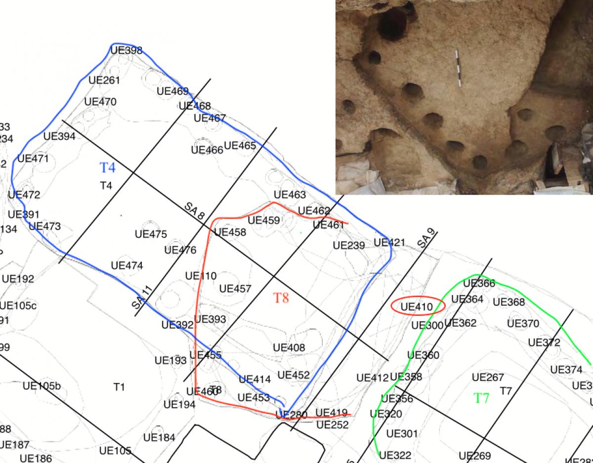 381 - T6-UE125 (a , (llamado en el año 2013, unidad UE167).Entierro de la tumba T6. Depósito de huesos humanos en posición primaria localizado a 3,48 m de profundidad. Es un entierro múltiple...