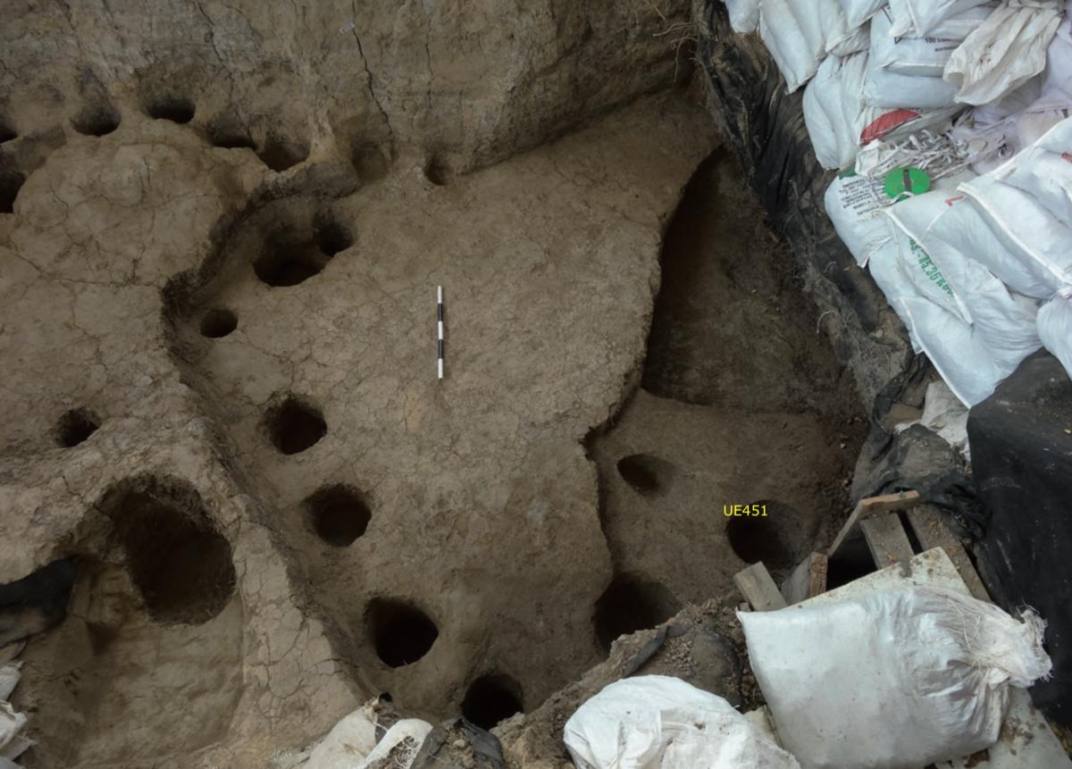 381 - T6-UE125 (a , (llamado en el año 2013, unidad UE167).Entierro de la tumba T6. Depósito de huesos humanos en posición primaria localizado a 3,48 m de profundidad. Es un entierro múltiple...