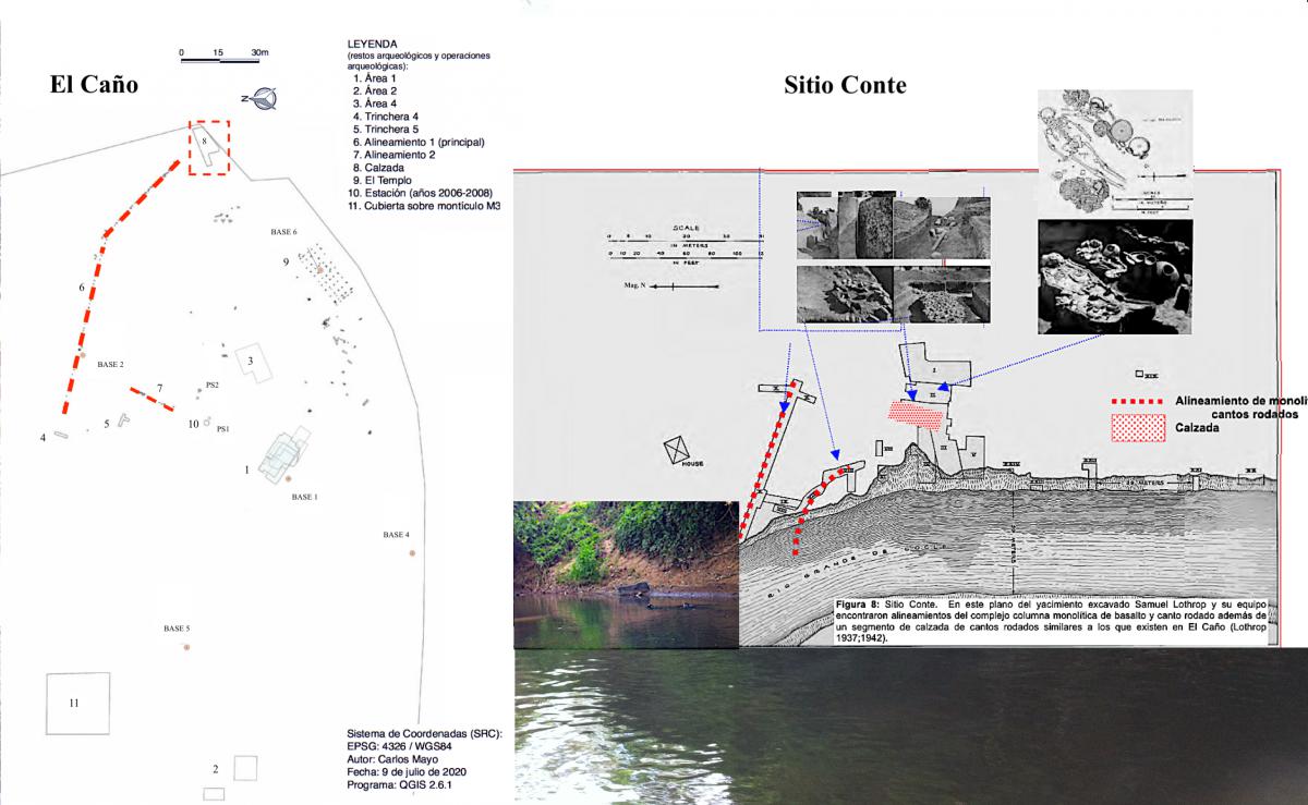 Estos trabajos, el levantamiento micro-topográfico y las prospecciones realizadas pusieron de relieve que El Caño presenta una serie de estructuras muy similares a las de Sitio Conte: