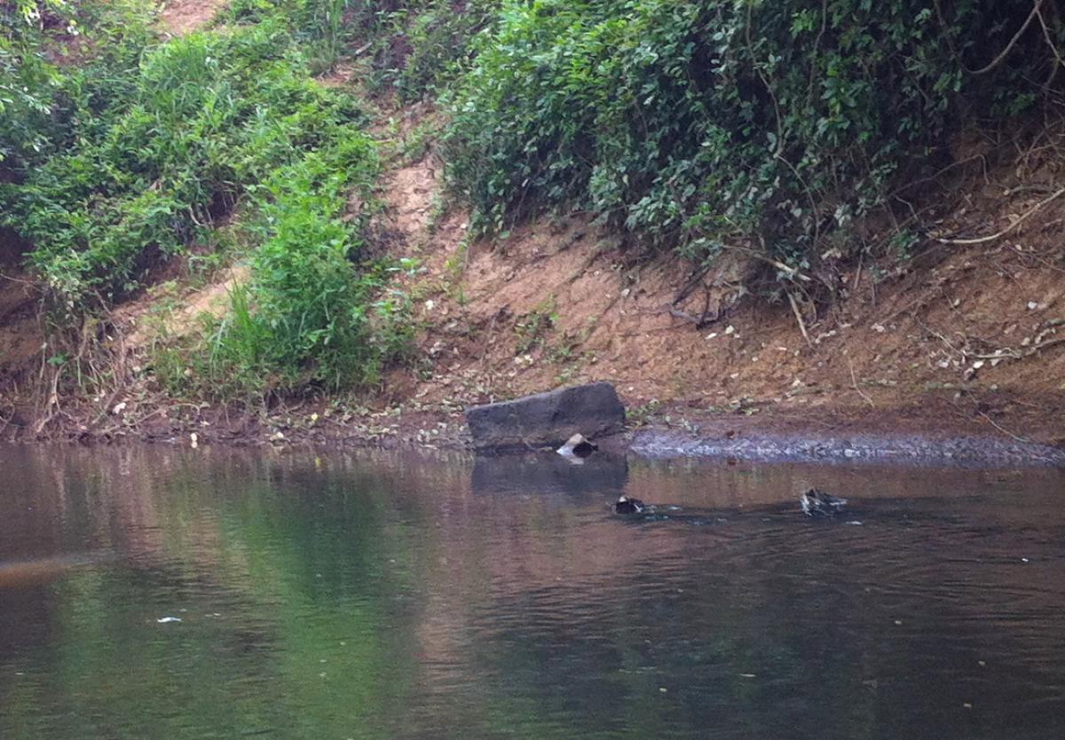 Detalle de las construcciones en superficie de un cementerio kuna actual. Vista tomada desde el río.