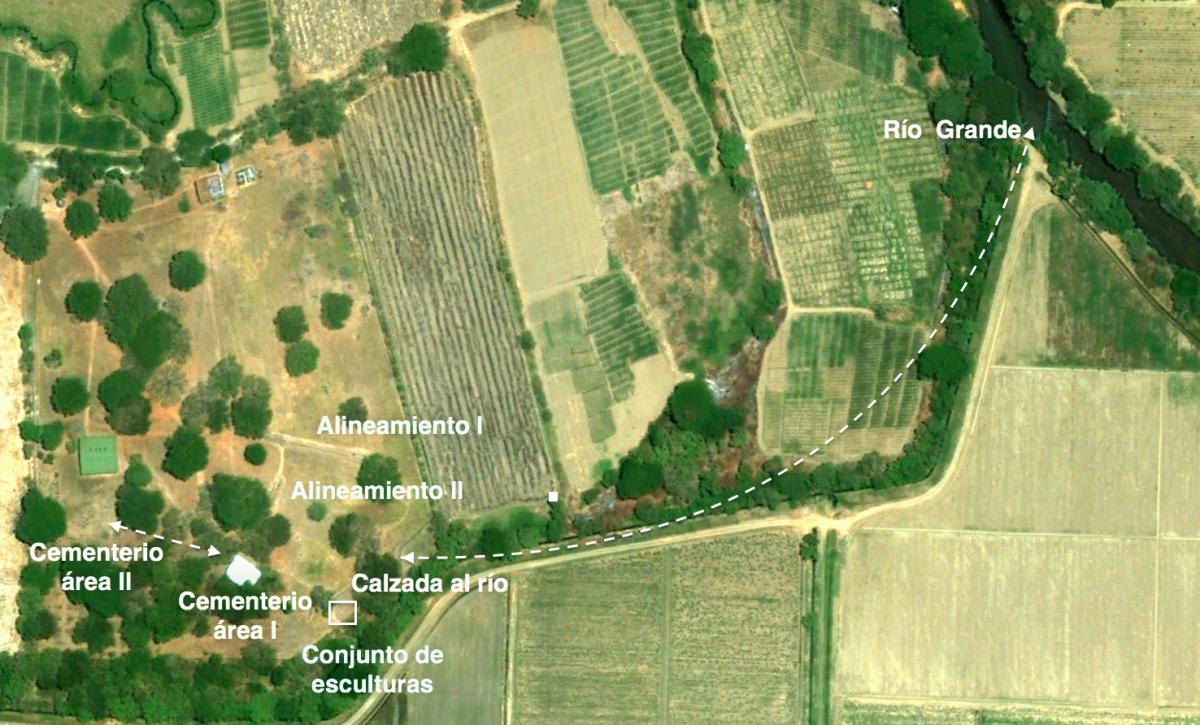 La calzada de El Caño que unía la explanada del centro ceremonial con Río Grande