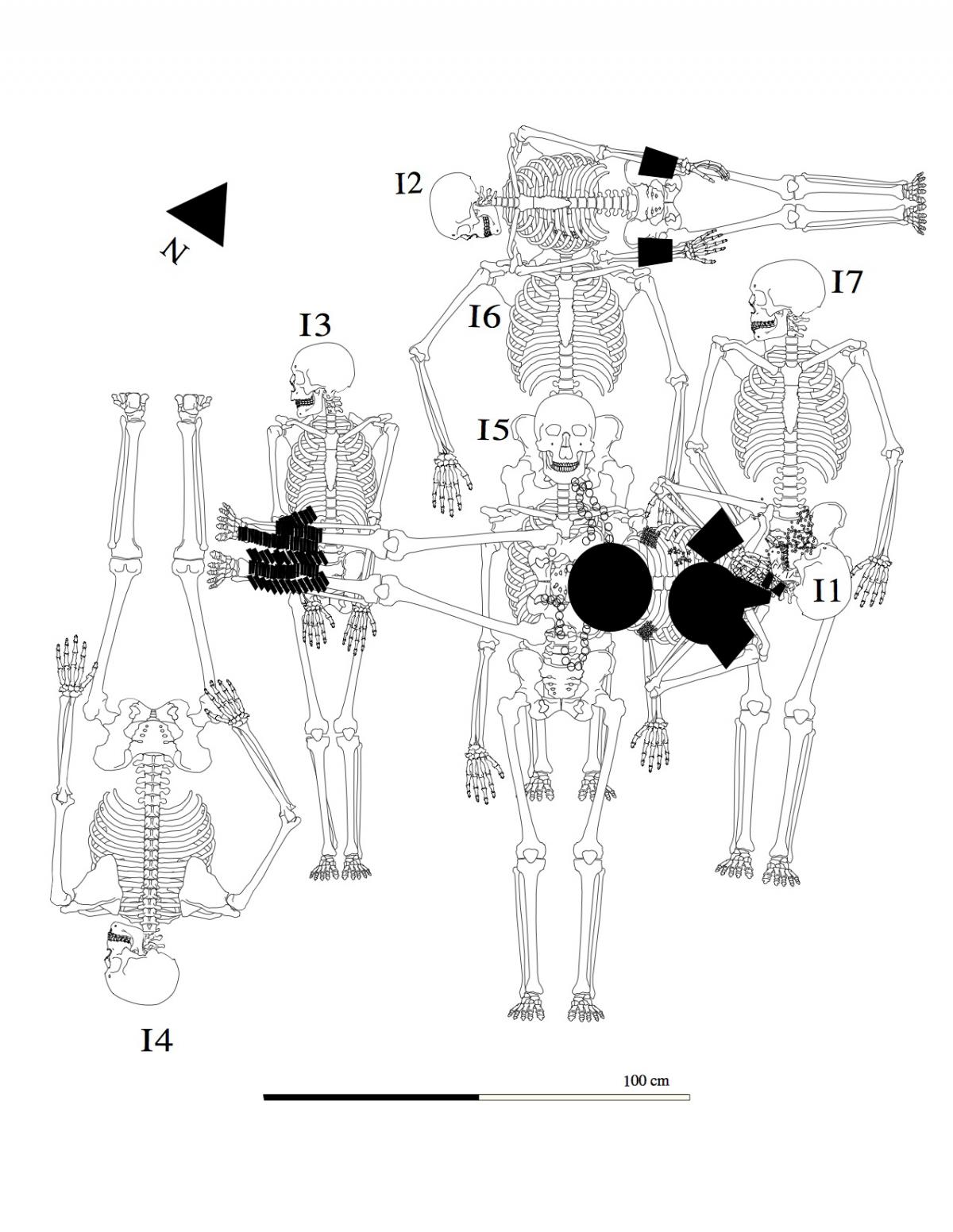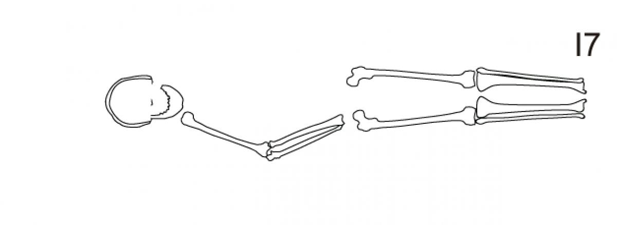 Esquema de los restos óseos del individuo I07