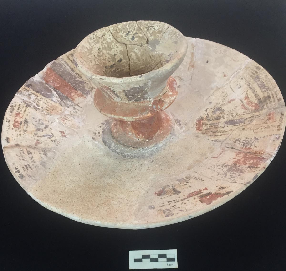3568 - Pedestal bajo bicónico de engobe rojo y borde redondeado