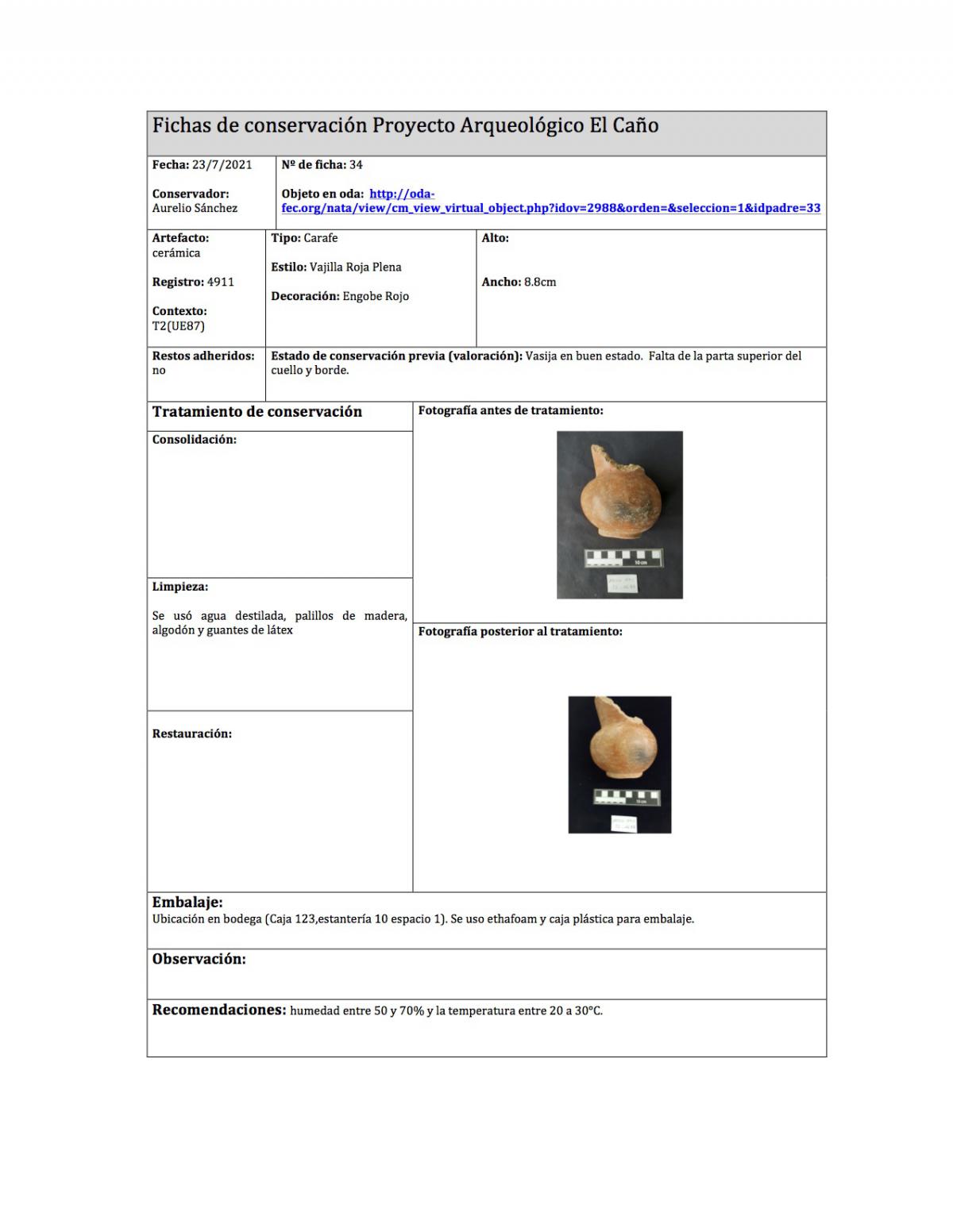 Ficha de conservación del objeto