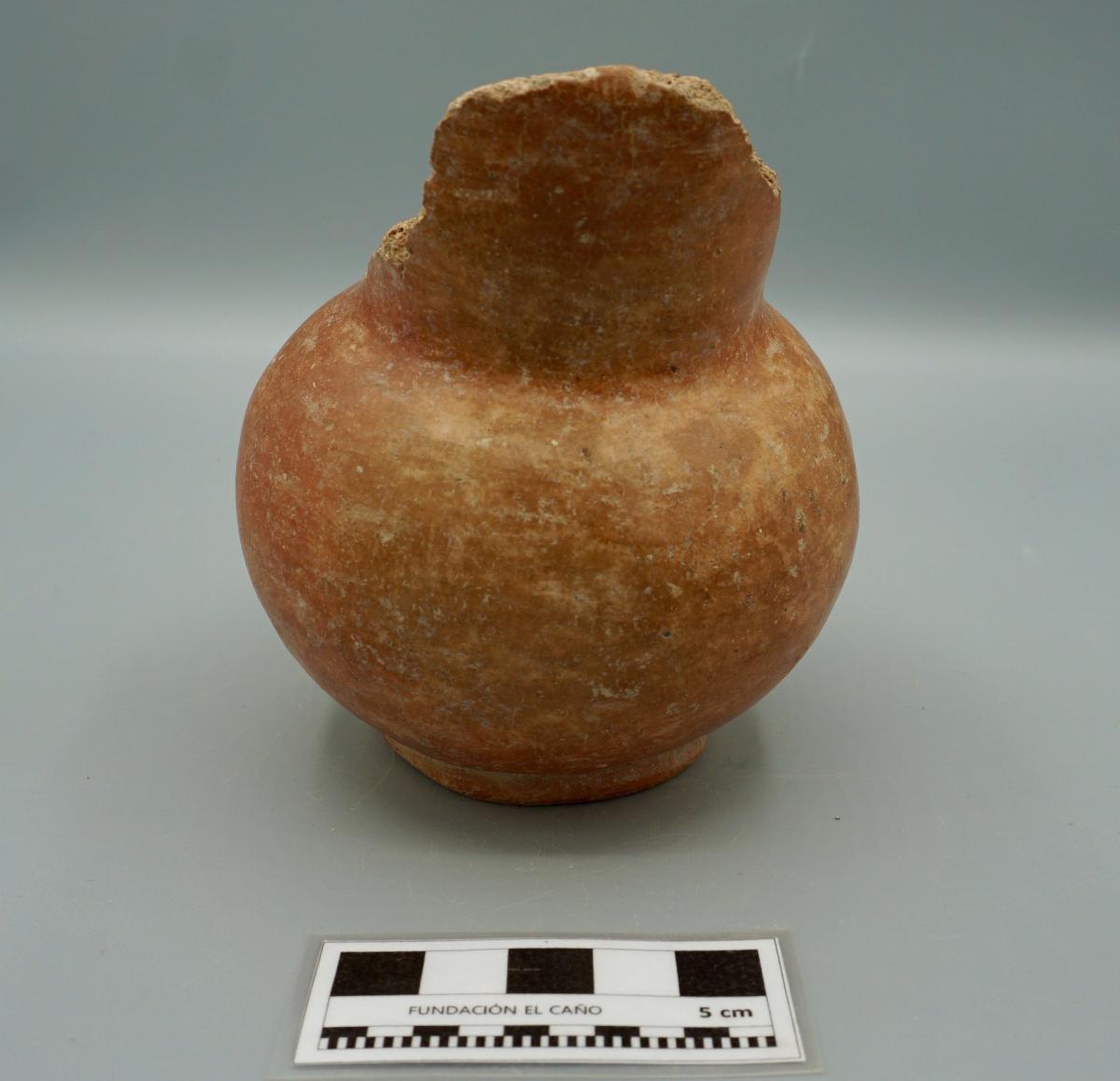 3632 - “Jarra globular de pasta roja plena, con base anular, borde recto y cuello corto