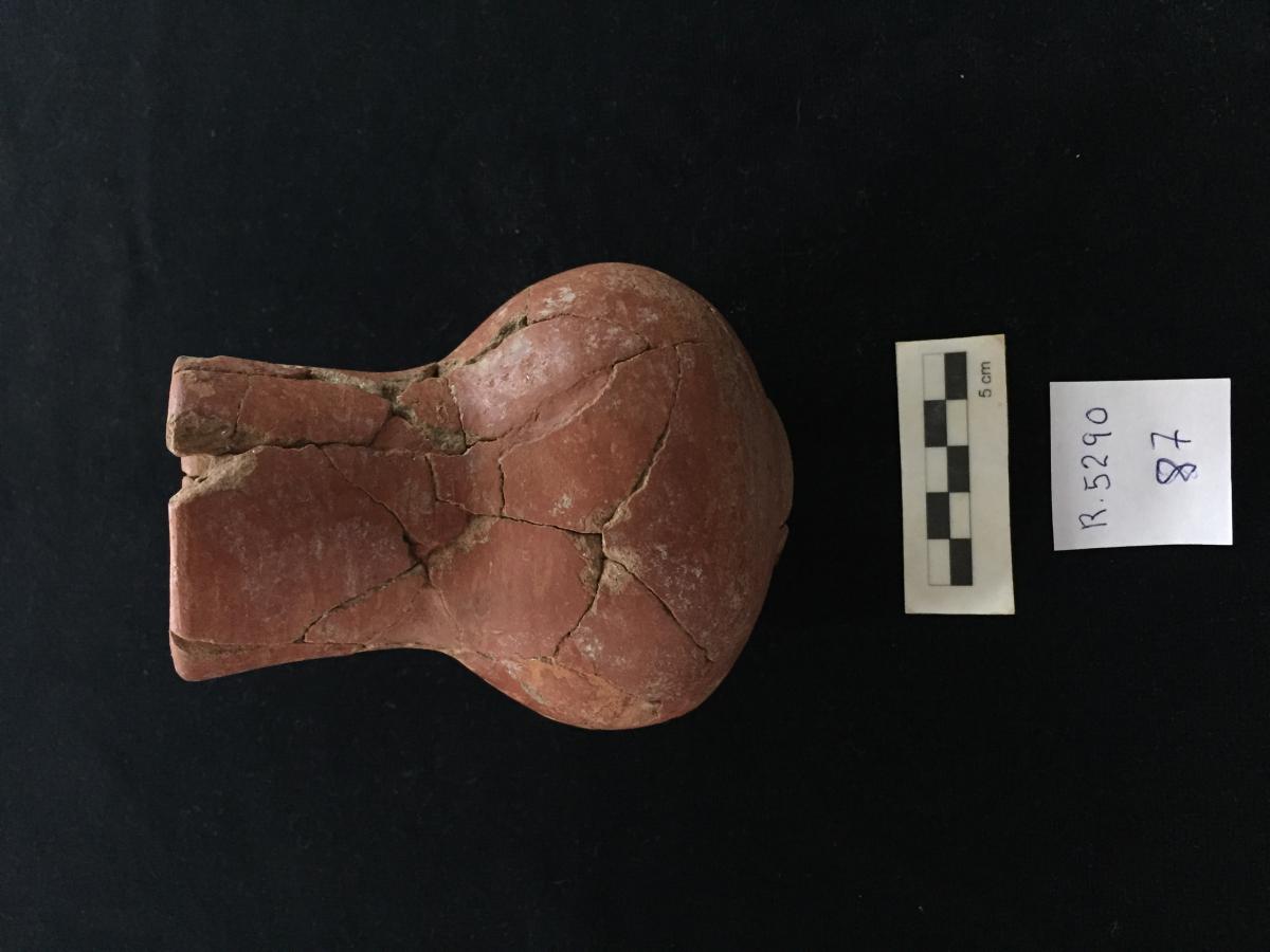 3632 - “Jarra globular de pasta roja plena, con base anular, borde recto y cuello corto