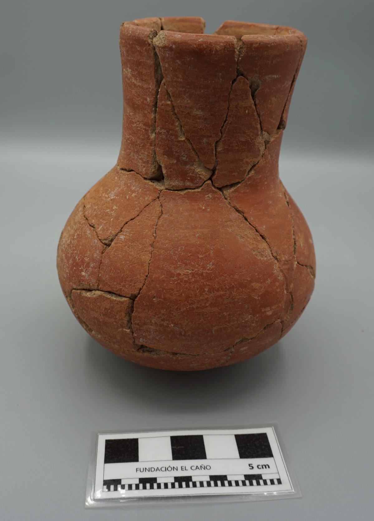 3561 - Jarra globular de cuello largo. Engobe de color rojo