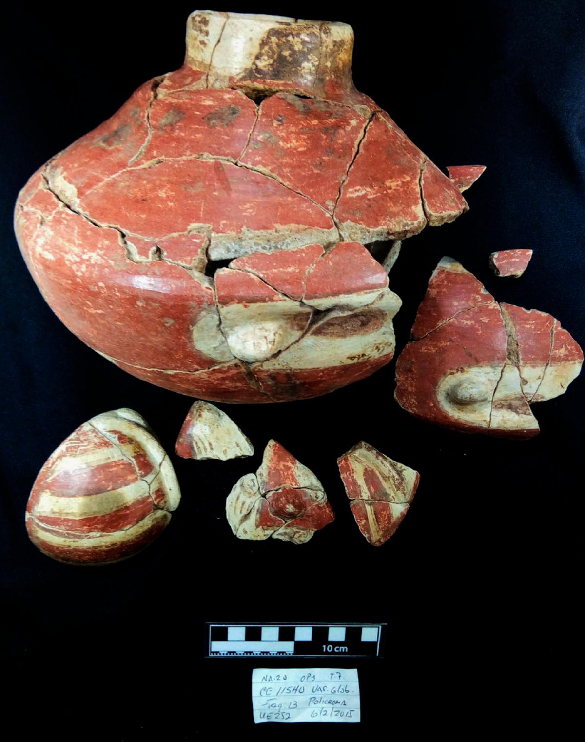 381 - T6-UE125 (a , (llamado en el año 2013, unidad UE167).Entierro de la tumba T6. Depósito de huesos humanos en posición primaria localizado a 3,48 m de profundidad. Es un entierro múltiple...
