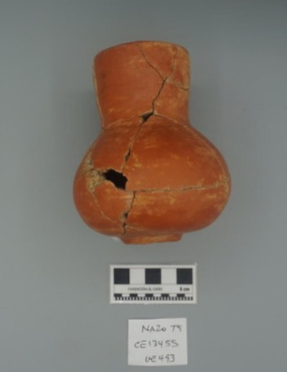 3561 - Jarra globular de cuello largo. Engobe de color rojo