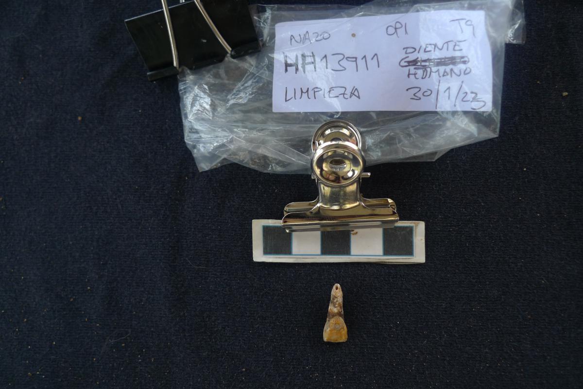 381 - T6-UE125 (a , (llamado en el año 2013, unidad UE167).Entierro de la tumba T6. Depósito de huesos humanos en posición primaria localizado a 3,48 m de profundidad. Es un entierro múltiple...