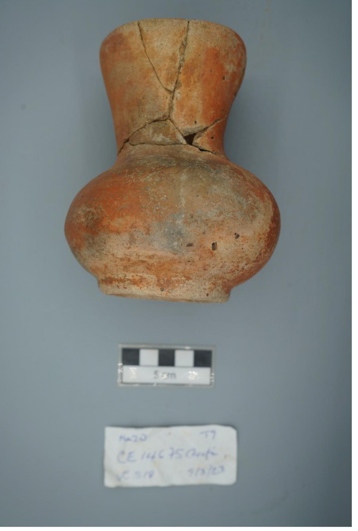 3632 - “Jarra globular de pasta roja plena, con base anular, borde recto y cuello corto