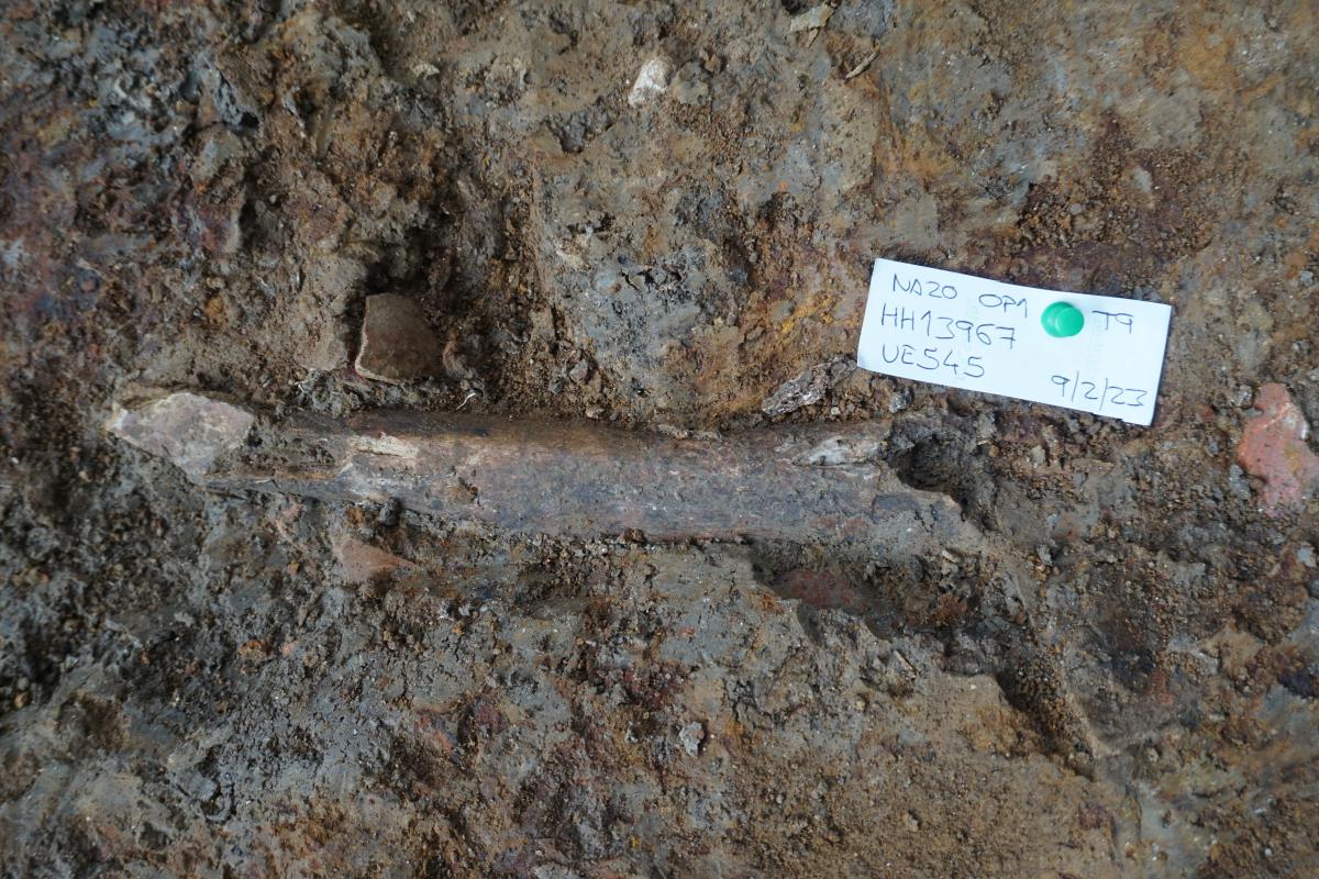 381 - T6-UE125 (a , (llamado en el año 2013, unidad UE167).Entierro de la tumba T6. Depósito de huesos humanos en posición primaria localizado a 3,48 m de profundidad. Es un entierro múltiple...