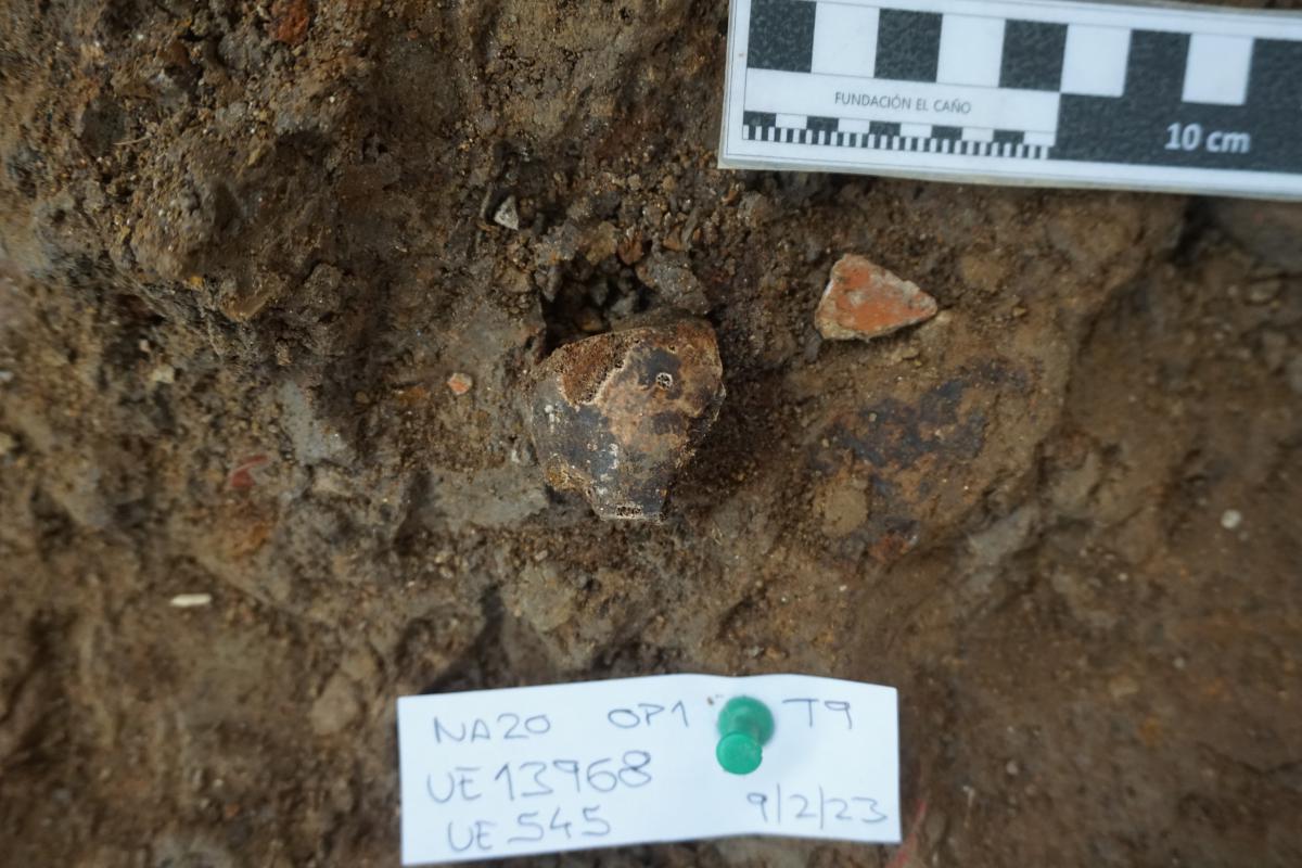 381 - T6-UE125 (a , (llamado en el año 2013, unidad UE167).Entierro de la tumba T6. Depósito de huesos humanos en posición primaria localizado a 3,48 m de profundidad. Es un entierro múltiple...