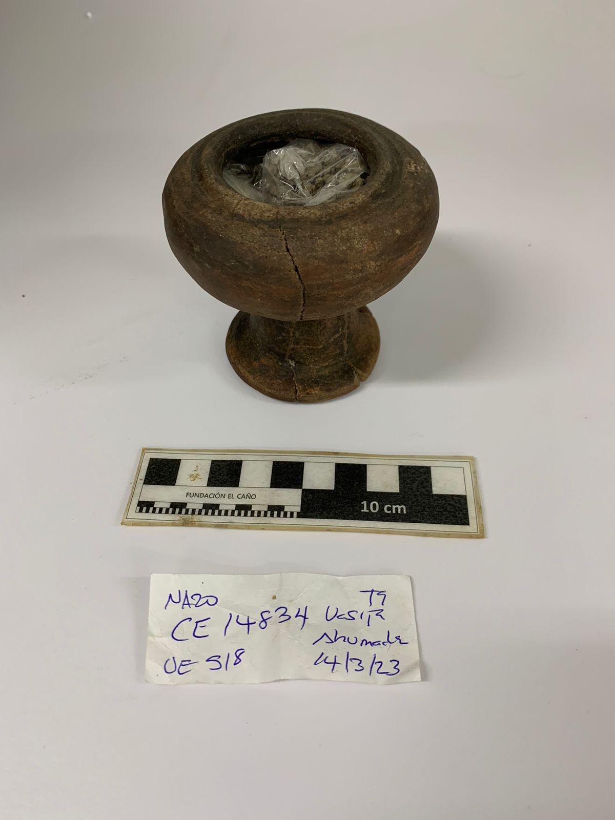 3568 - Pedestal bajo bicónico de engobe rojo y borde redondeado