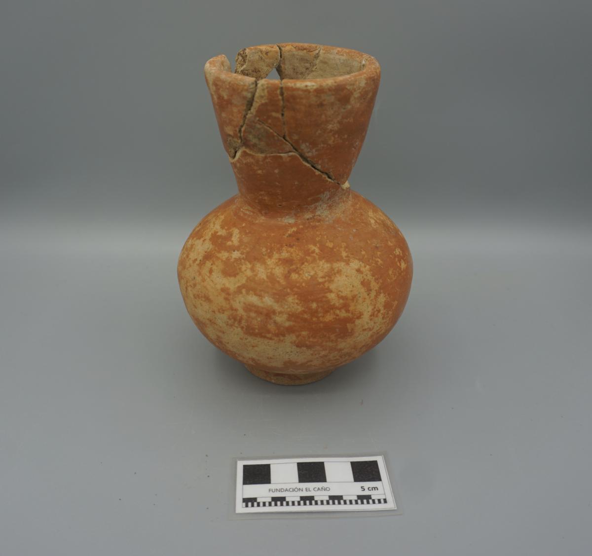 3561 - Jarra globular de cuello largo. Engobe de color rojo