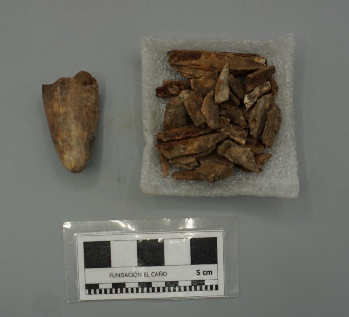 3592 - Canino de perro perforado. Aunque se encuentra fragmentado, se conservan sus partes.