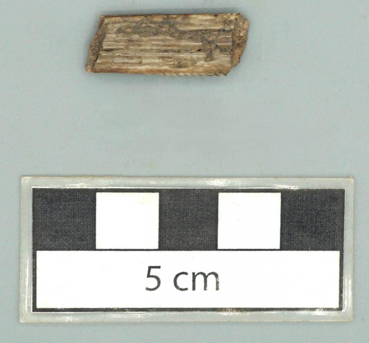 Fragmento de la zona mesial de una espina caudal de raya.