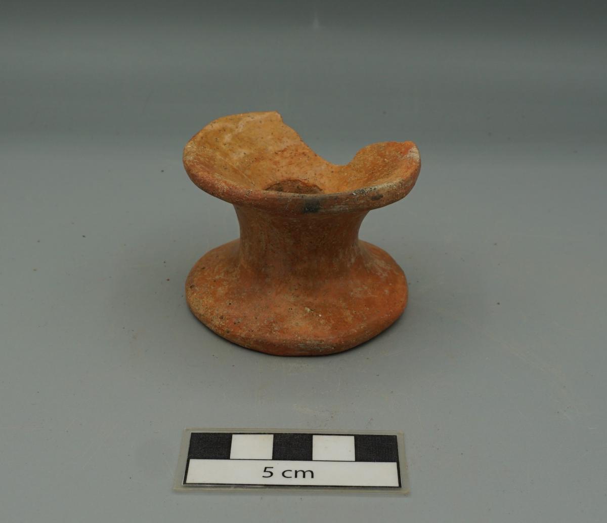 3568 - Pedestal bajo bicónico de engobe rojo y borde redondeado