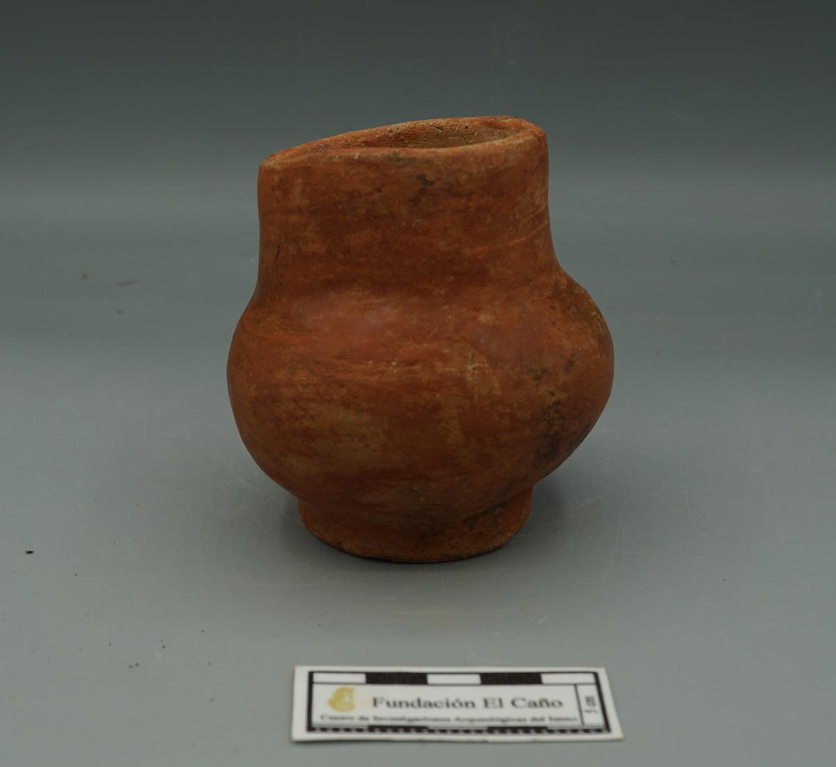3632 - “Jarra globular de pasta roja plena, con base anular, borde recto y cuello corto