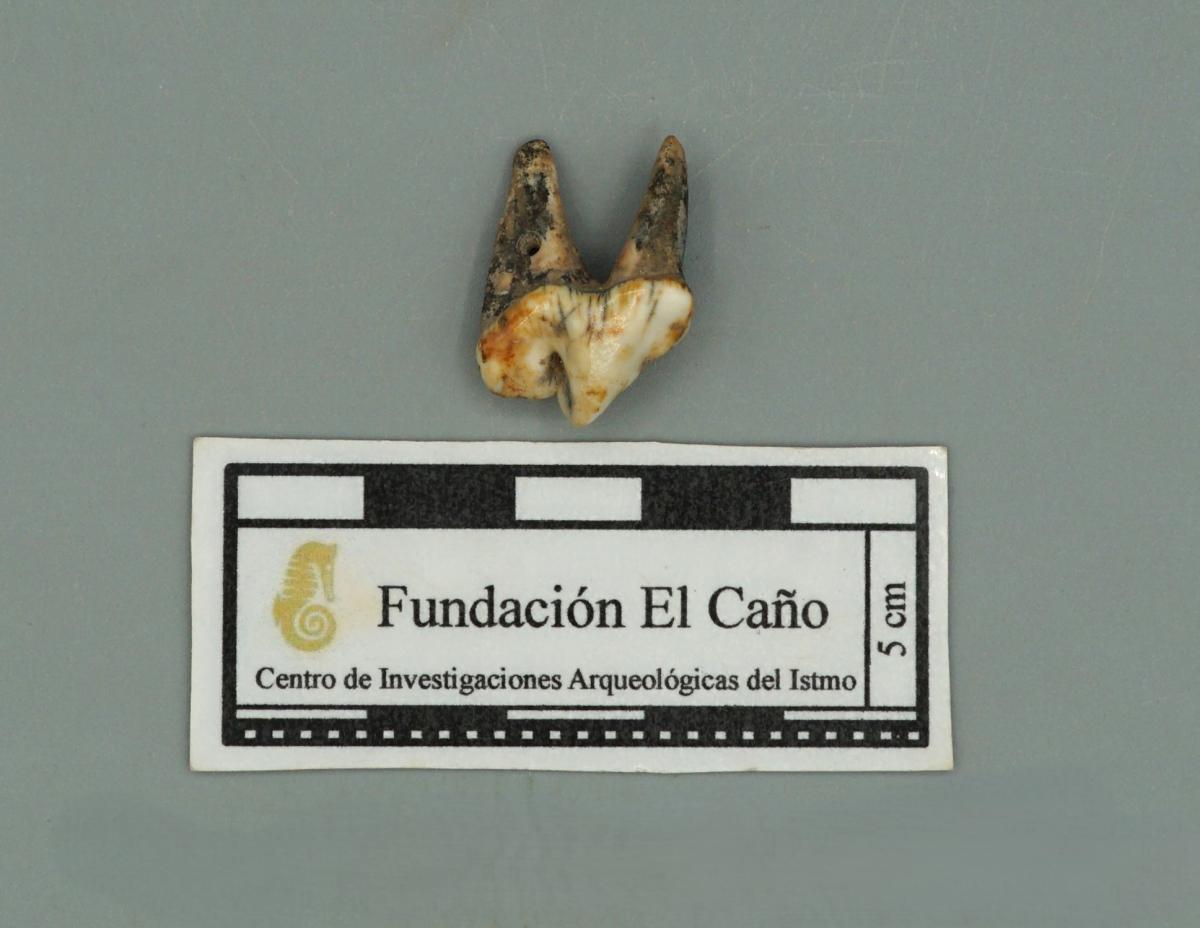 3571 - Diente perforado de tiburón. La perforación indica que pudo haber formado parte de un artefacto ornamental.