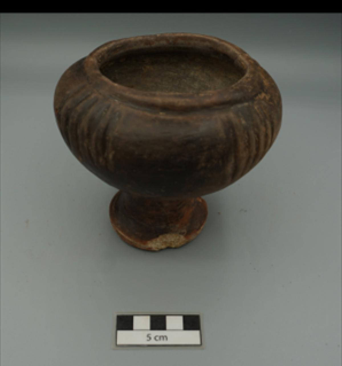 3568 - Pedestal bajo bicónico de engobe rojo y borde redondeado