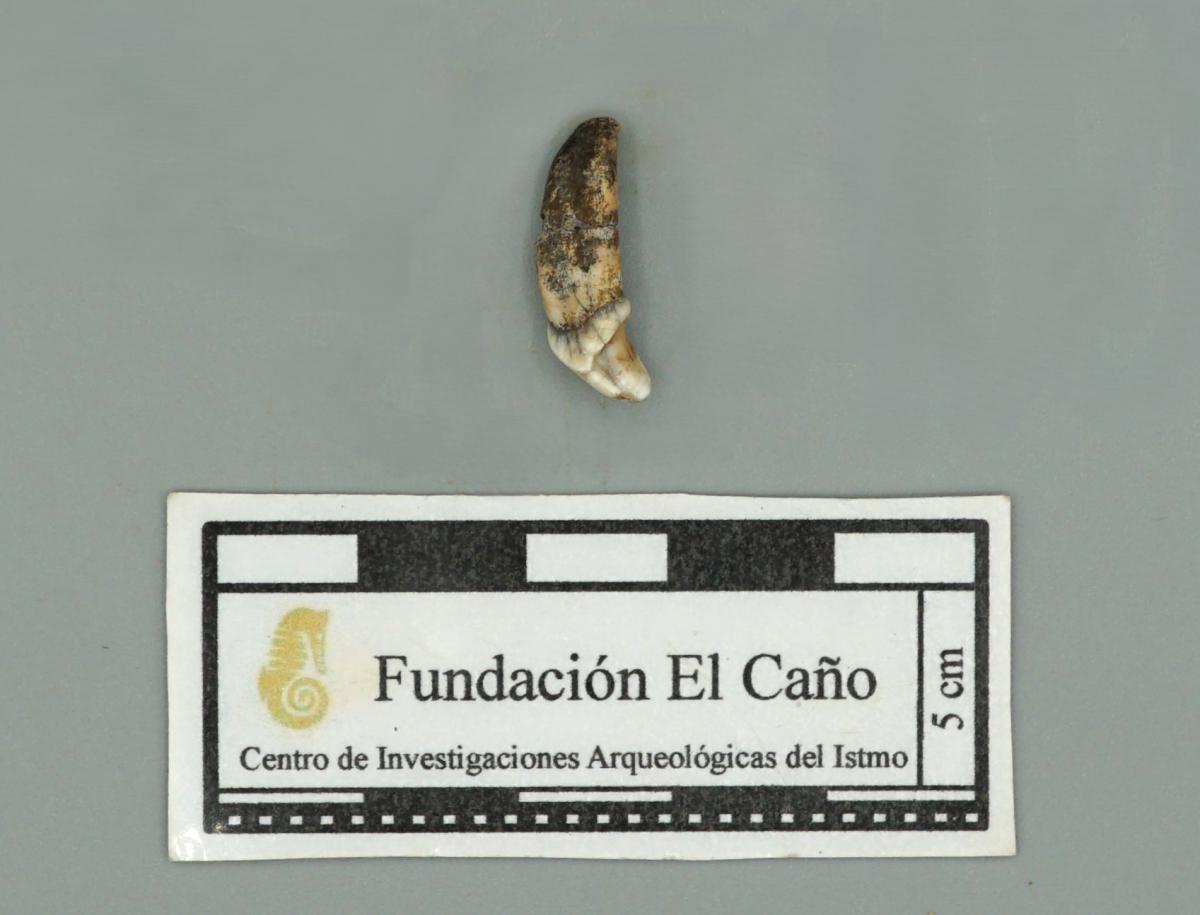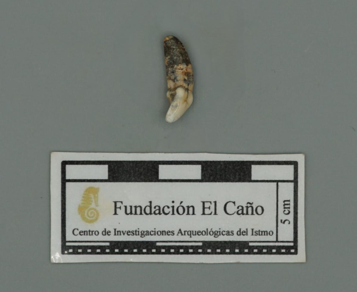 Vista del reverso de un tercer incisivo (I3) de perro