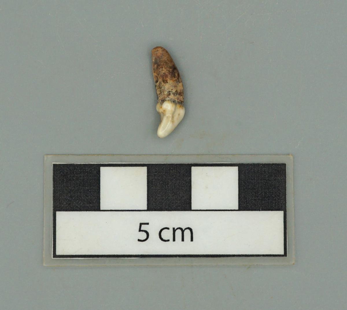 3592 - Canino de perro perforado. Aunque se encuentra fragmentado, se conservan sus partes.