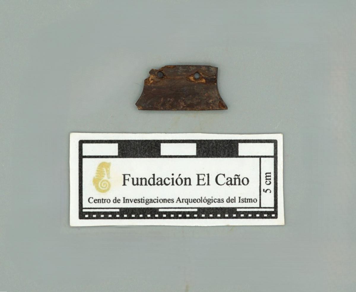 3553 - Cuenta de forma trapezoidal. Presenta dos perforaciones.