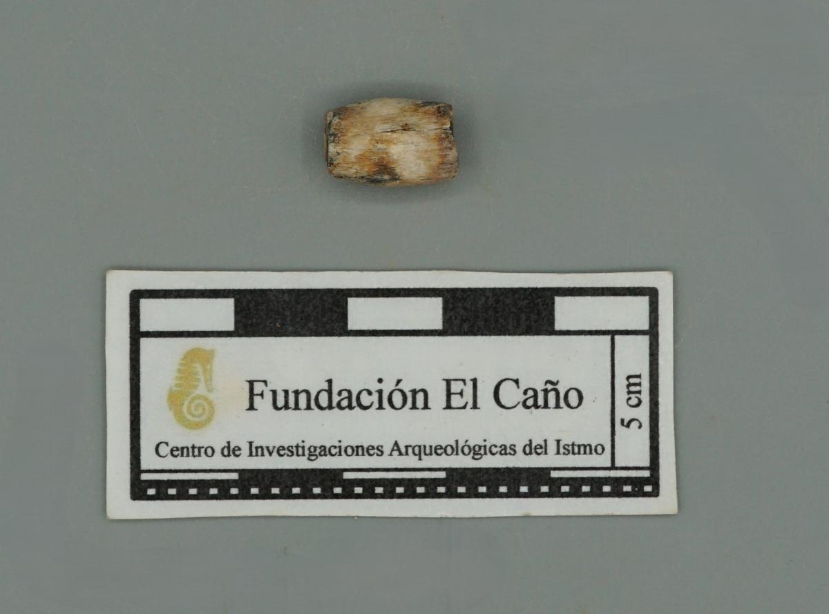 3548 - Tubo de hueso de fauna. El artefacto se encuentra fragmentado y presenta un evidente pulimento en su superficie. Se infiere que originalmente se trató de un hueso largo, con un conducto que...