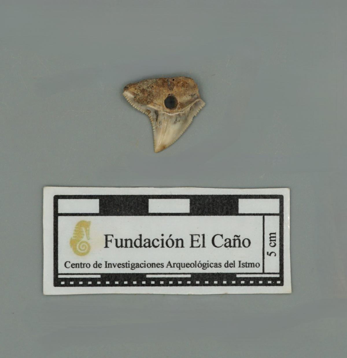 3571 - Diente perforado de tiburón. La perforación indica que pudo haber formado parte de un artefacto ornamental.