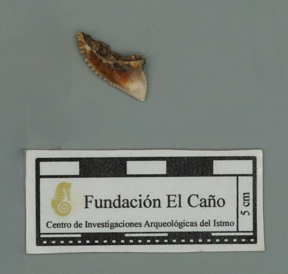 3571 - Diente perforado de tiburón. La perforación indica que pudo haber formado parte de un artefacto ornamental.