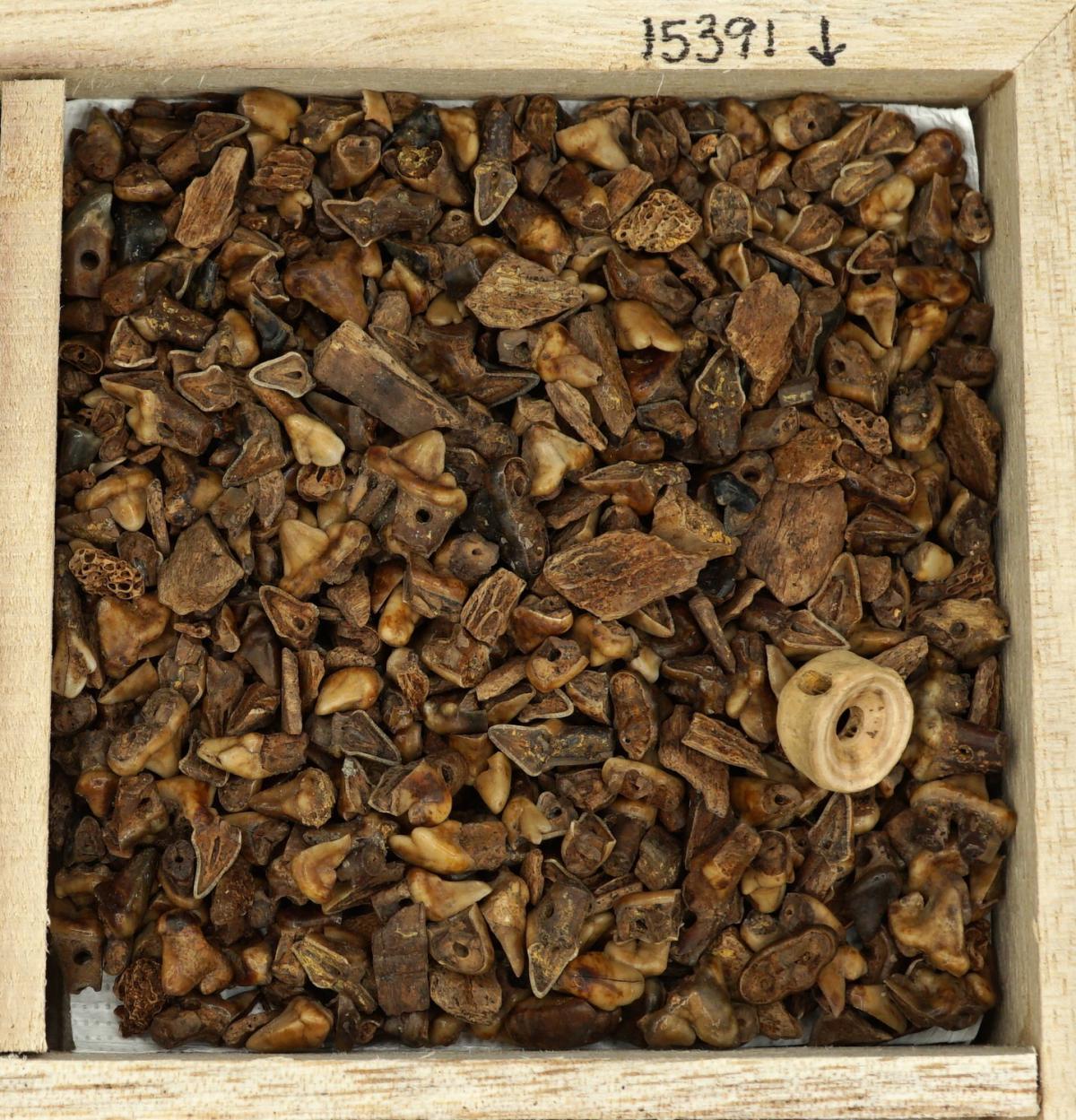 3594 - Conjunto de dientes de fauna, algunos de los cuales presentan perforaciones.