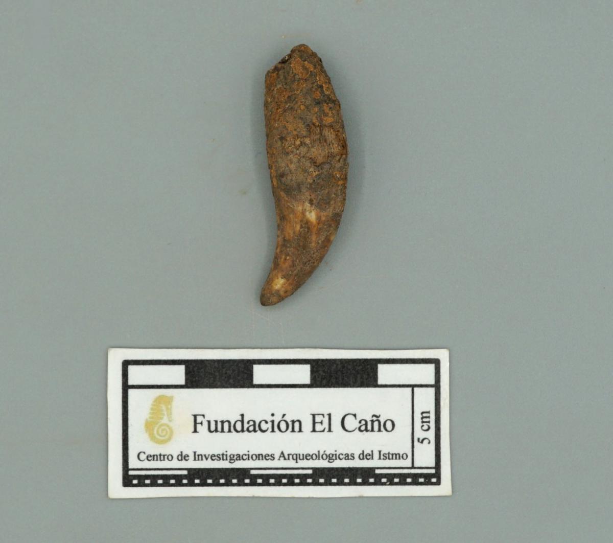 3571 - Diente perforado de tiburón. La perforación indica que pudo haber formado parte de un artefacto ornamental.