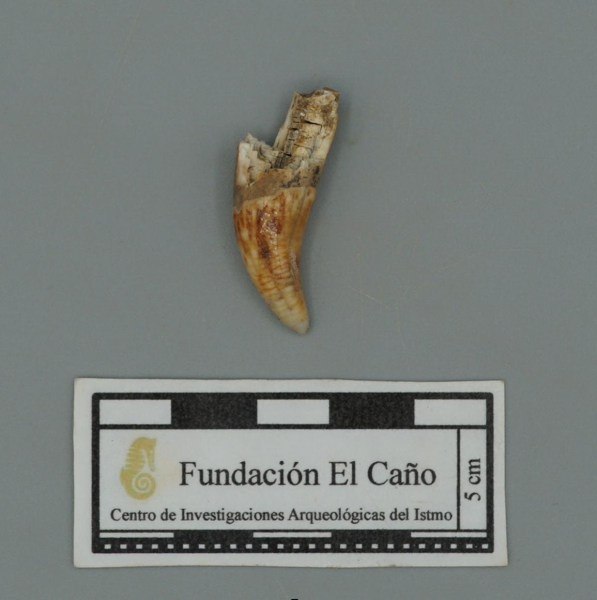 3592 - Canino de perro perforado. Aunque se encuentra fragmentado, se conservan sus partes.