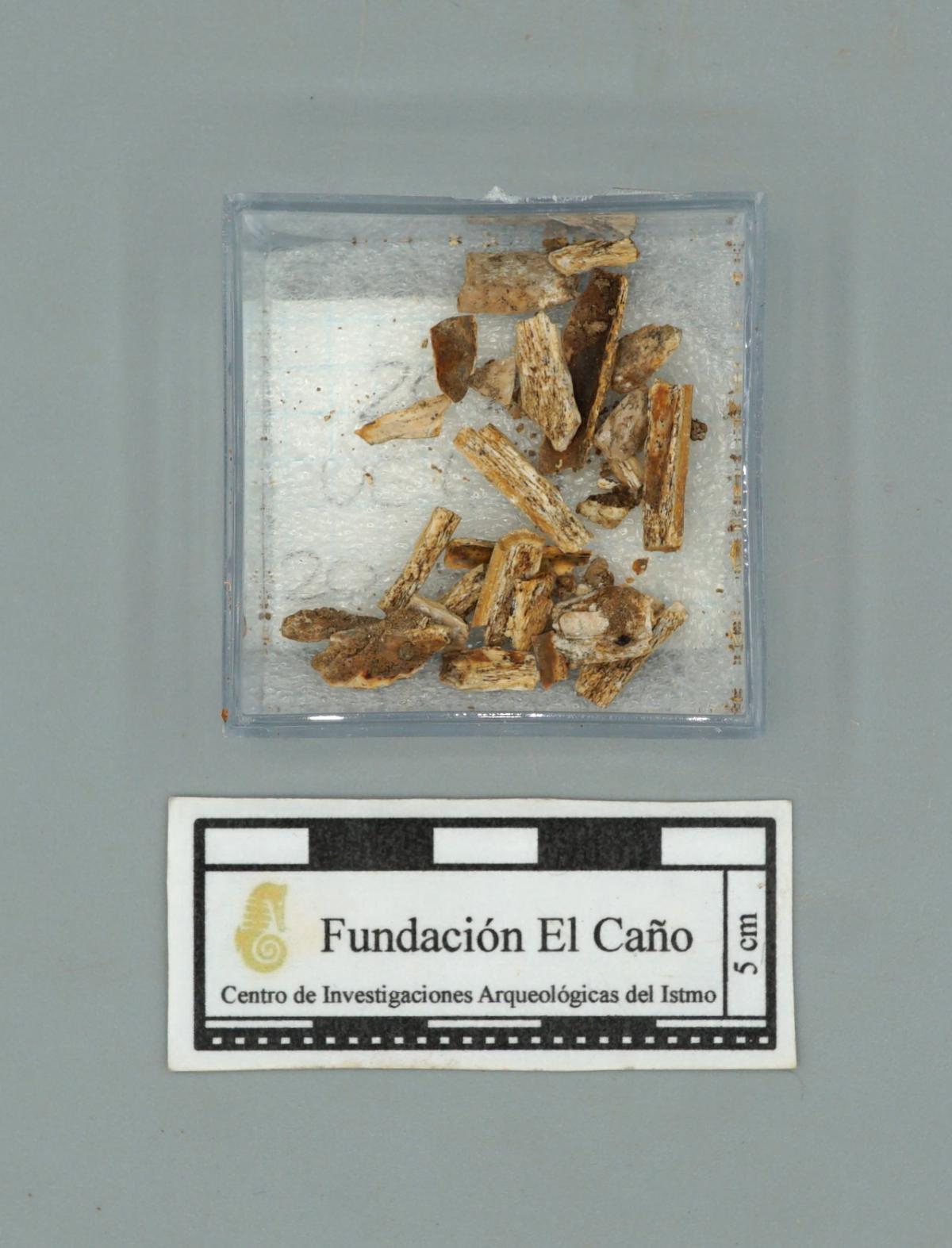 3548 - Tubo de hueso de fauna. El artefacto se encuentra fragmentado y presenta un evidente pulimento en su superficie. Se infiere que originalmente se trató de un hueso largo, con un conducto que...