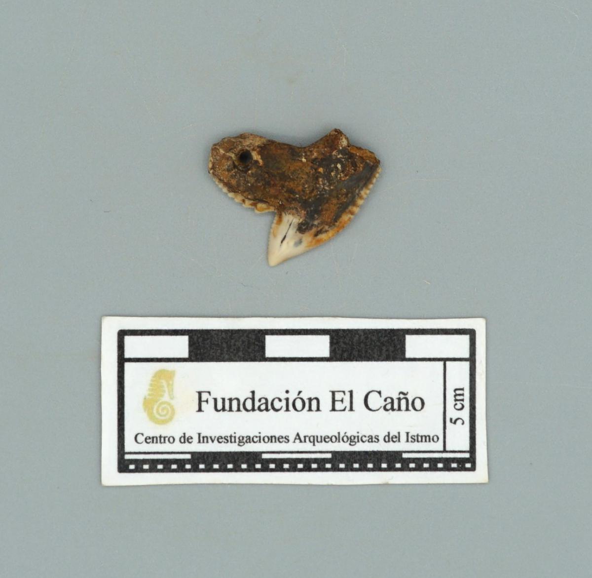 3571 - Diente perforado de tiburón. La perforación indica que pudo haber formado parte de un artefacto ornamental.