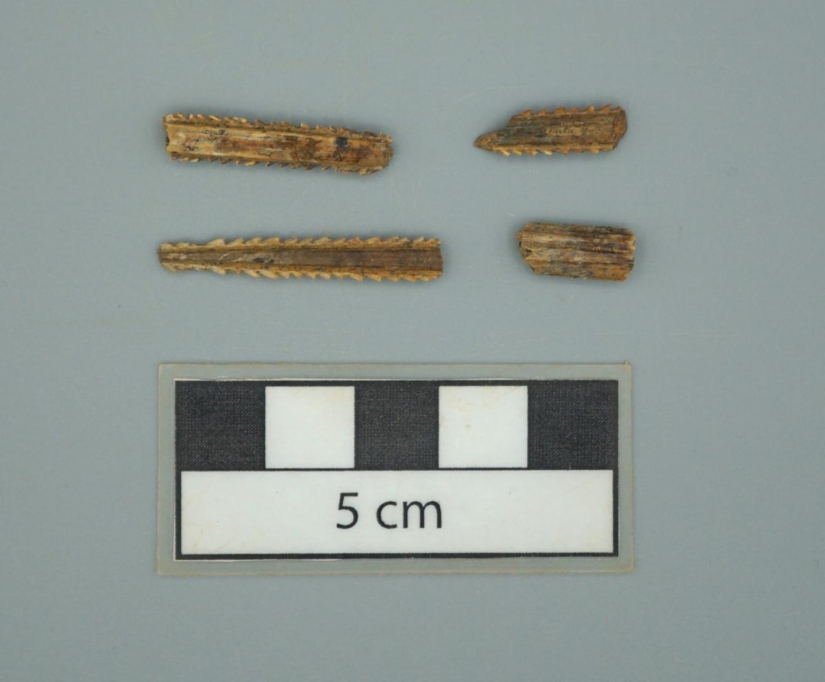 3564 - Arpones y fragmentos de arpones elaborados a partir de dentículos de pez sierra.