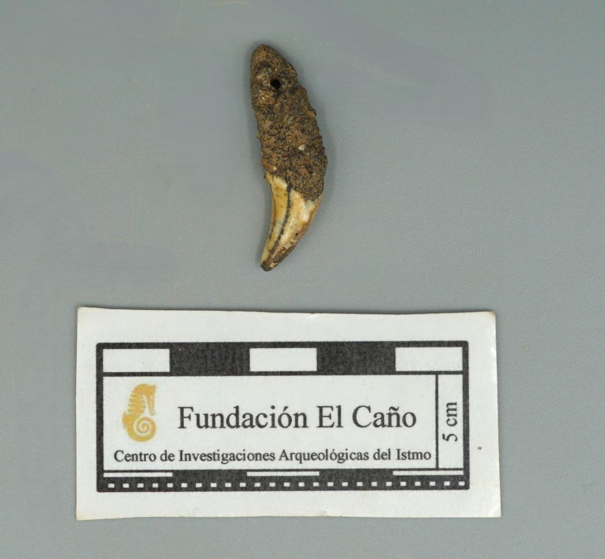 3571 - Diente perforado de tiburón. La perforación indica que pudo haber formado parte de un artefacto ornamental.