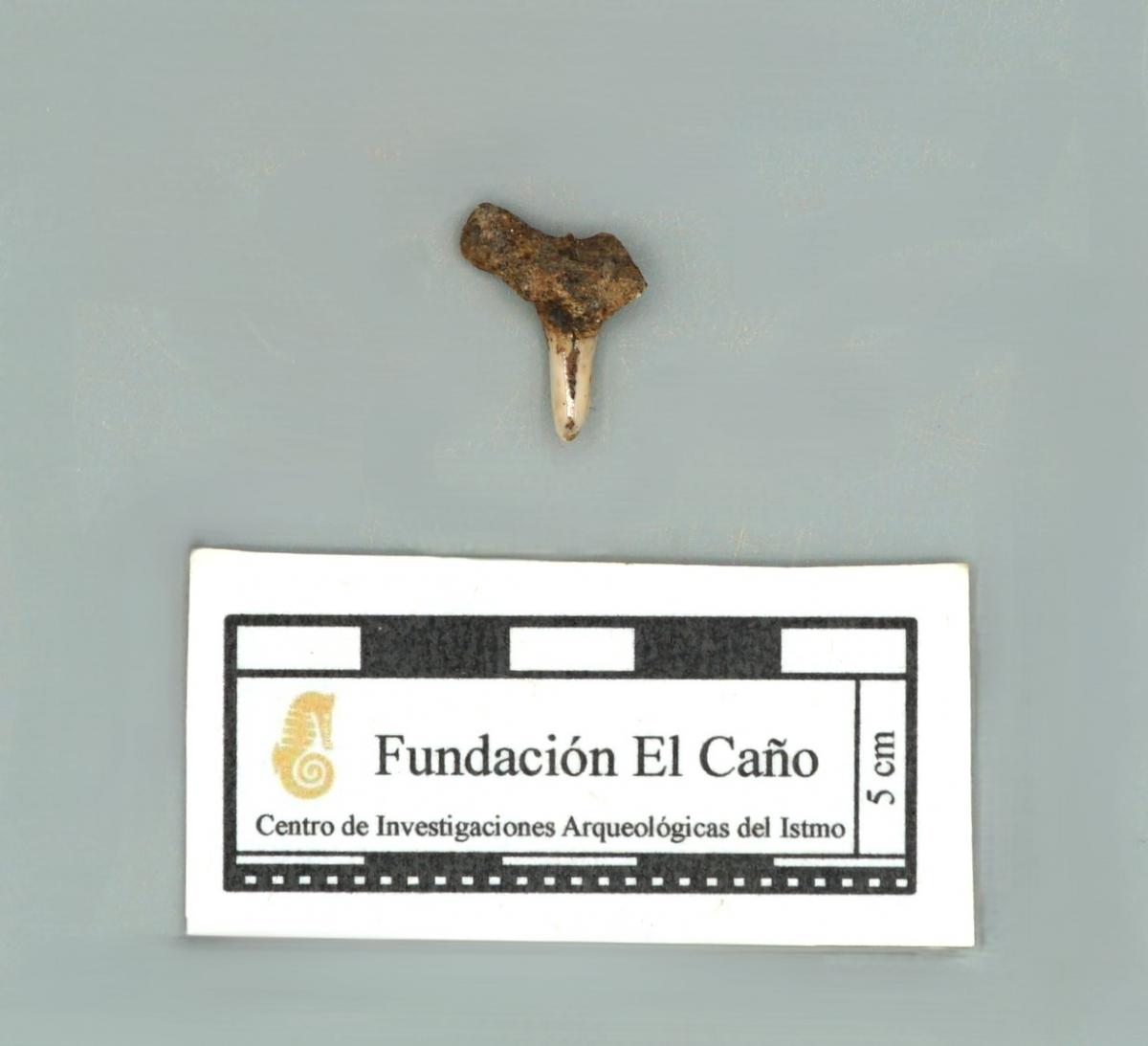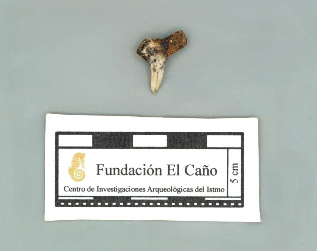 3571 - Diente perforado de tiburón. La perforación indica que pudo haber formado parte de un artefacto ornamental.