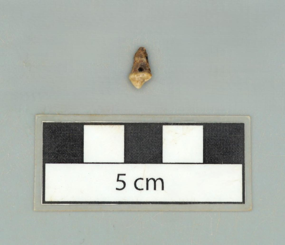 3571 - Diente perforado de tiburón. La perforación indica que pudo haber formado parte de un artefacto ornamental.