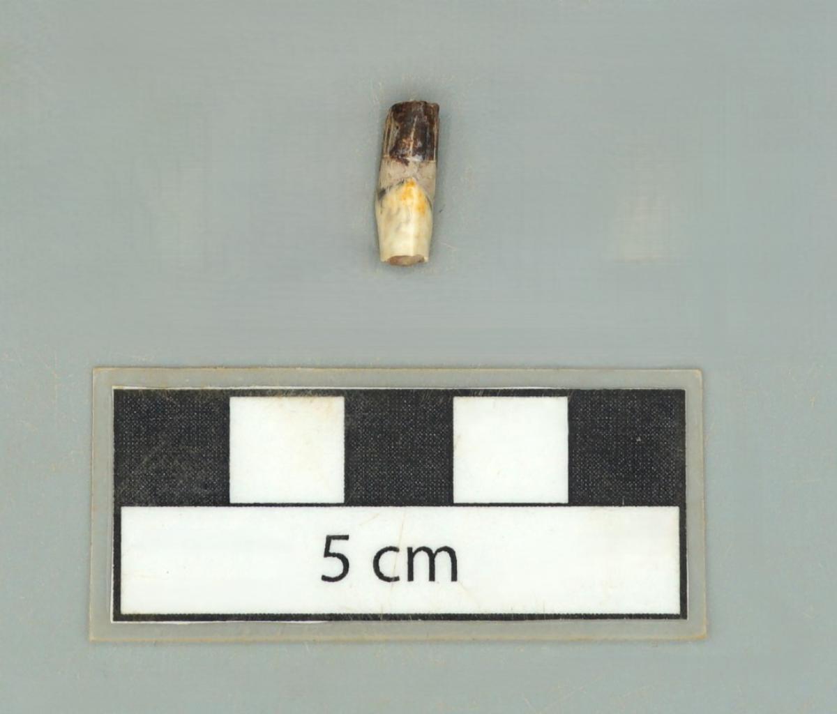 3592 - Canino de perro perforado. Aunque se encuentra fragmentado, se conservan sus partes.