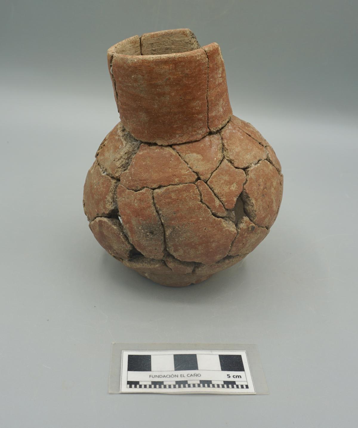3632 - “Jarra globular de pasta roja plena, con base anular, borde recto y cuello corto