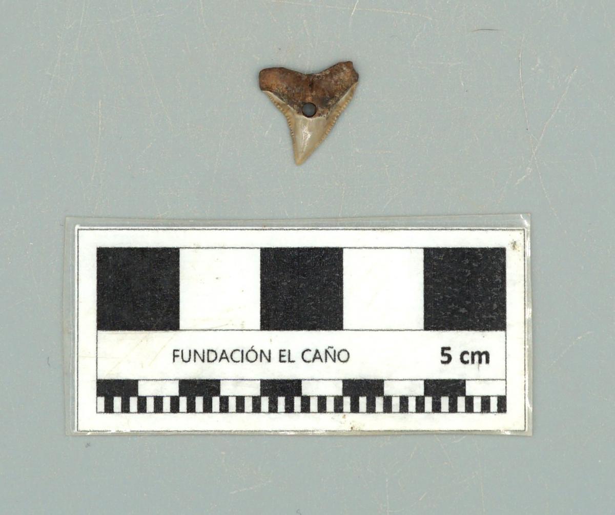 3571 - Diente perforado de tiburón. La perforación indica que pudo haber formado parte de un artefacto ornamental.