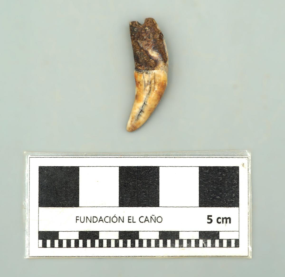 3592 - Canino de perro perforado. Aunque se encuentra fragmentado, se conservan sus partes.