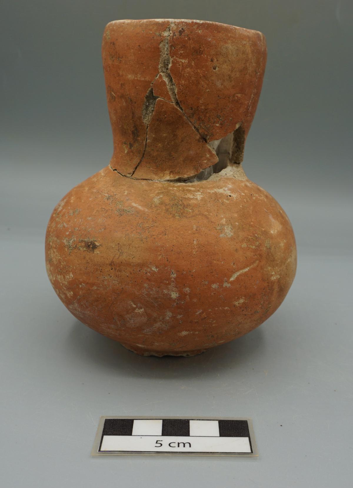 3561 - Jarra globular de cuello largo. Engobe de color rojo