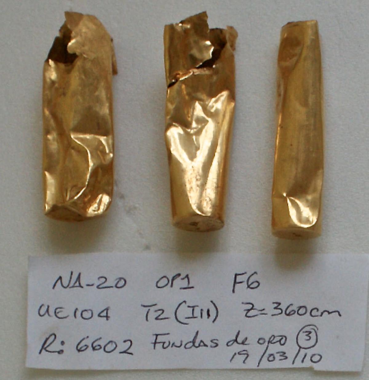 0,2%(Cu), 5,5%(Ag), 94,3%(Au) - 0,2%(Cu), 5,6%(Ag), 94,2%(Au) y madera..(1)