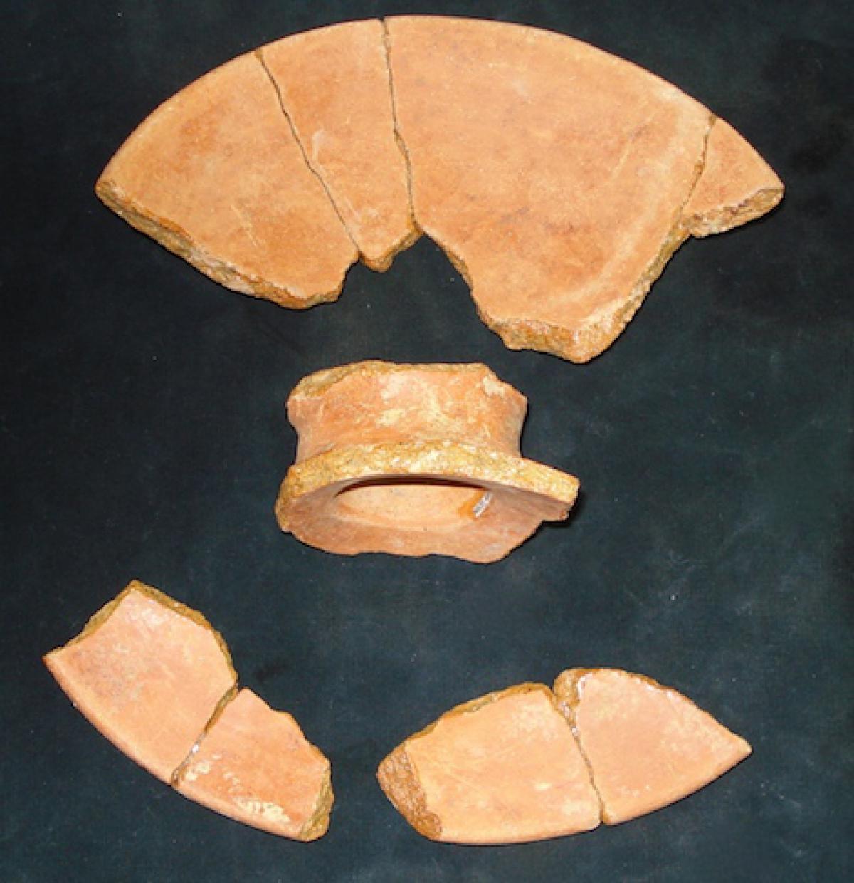 3568 - Pedestal bajo bicónico de engobe rojo y borde redondeado