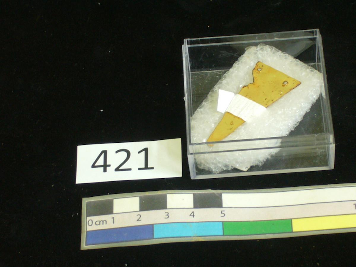 3571 - Diente perforado de tiburón. La perforación indica que pudo haber formado parte de un artefacto ornamental.