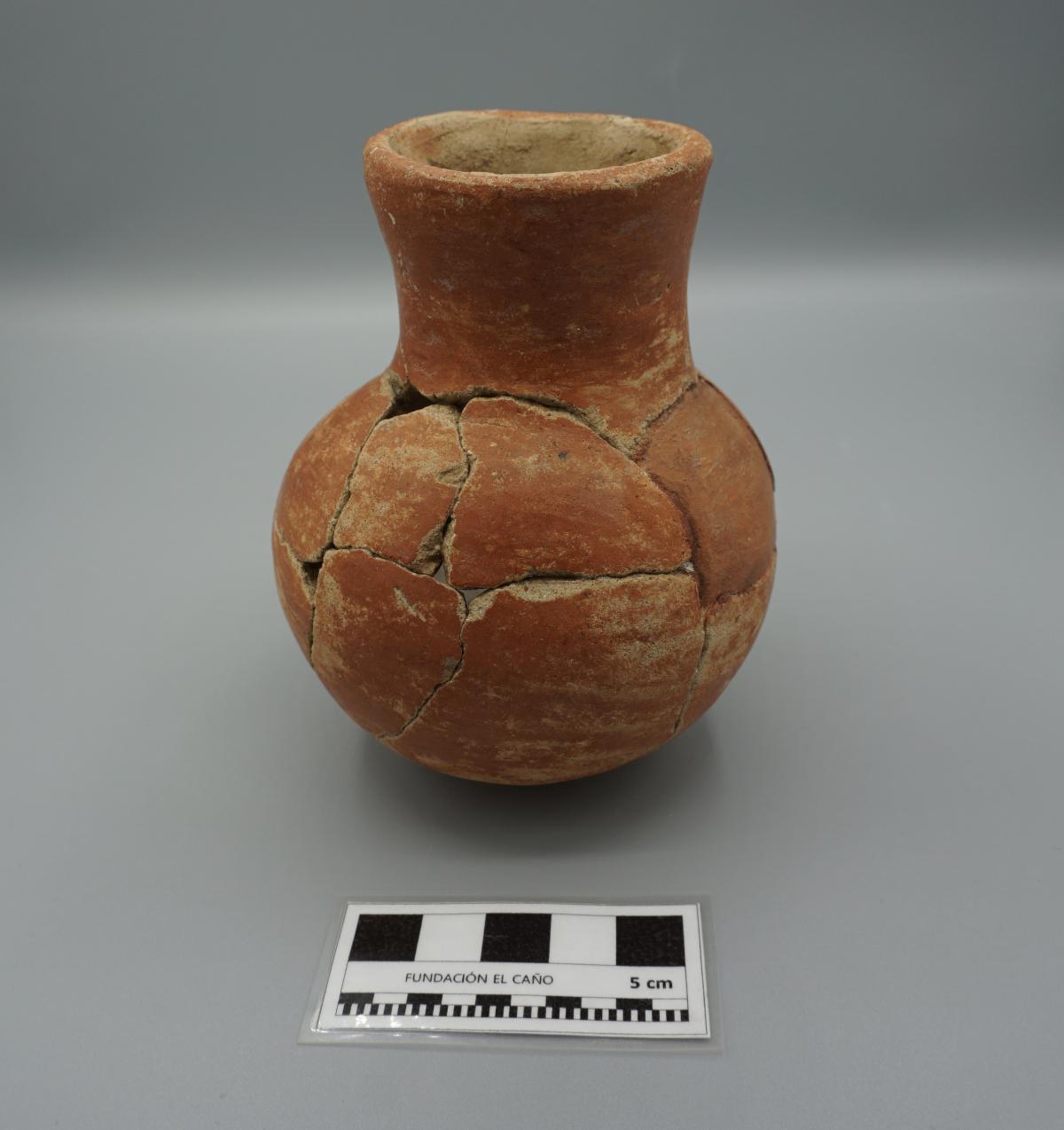 3632 - “Jarra globular de pasta roja plena, con base anular, borde recto y cuello corto